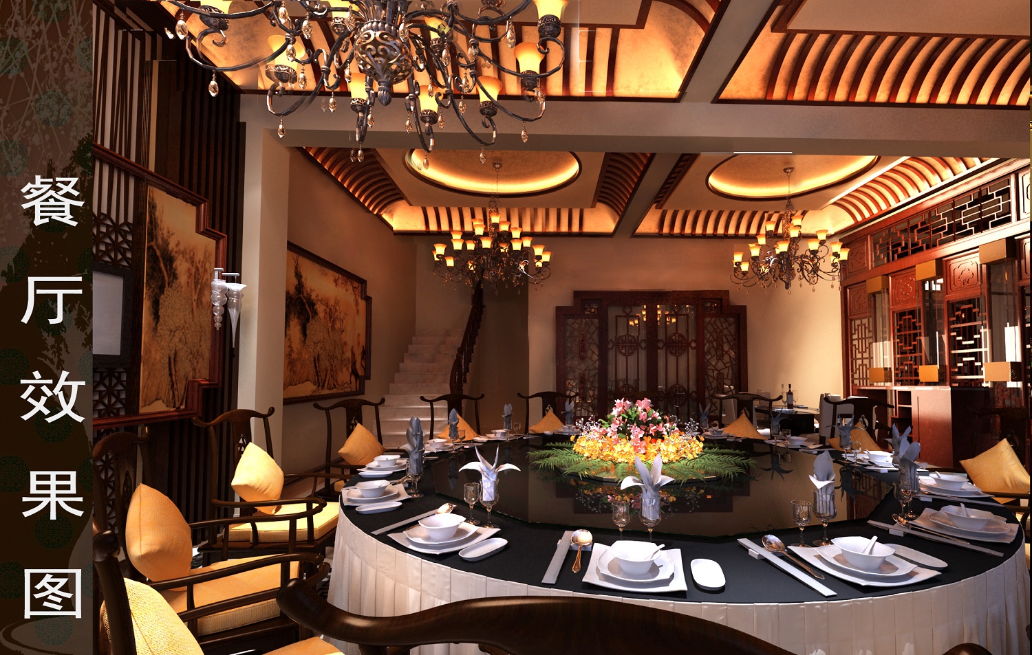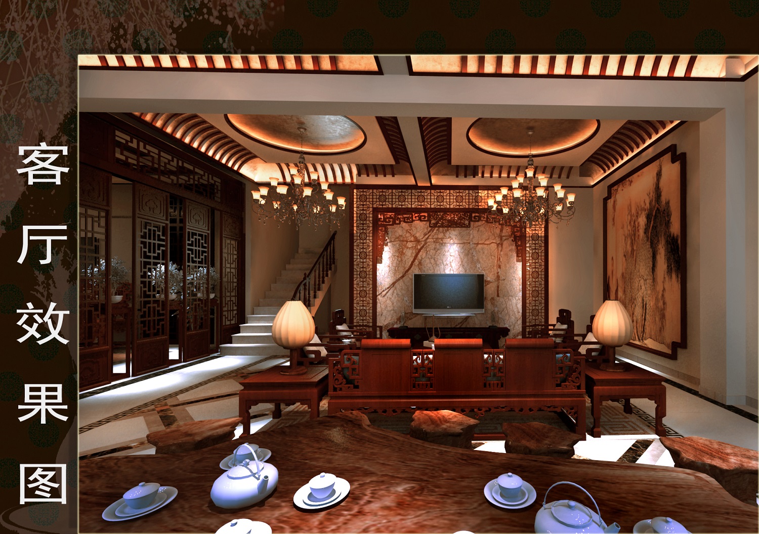 呈现原汁原味的中式风格,设计师将许多中式元素运用的淋漓尽致。水墨画背景的电视背景墙,做工精细的古典家具,精美雕花的门窗,以及深沉典雅的家居基调,无不让人沉迷于这浓浓的中式风情。