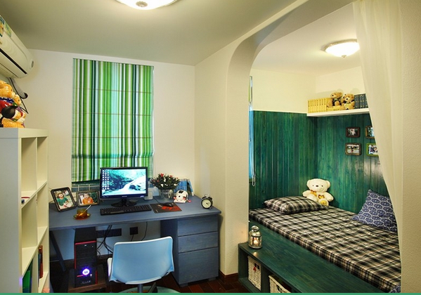 小孩小时候就是爬啊玩啊,最多要个婴儿床睡觉,儿童房只要铺上垫子给孩子爬就行了,上小学了再带他选喜欢的家具。